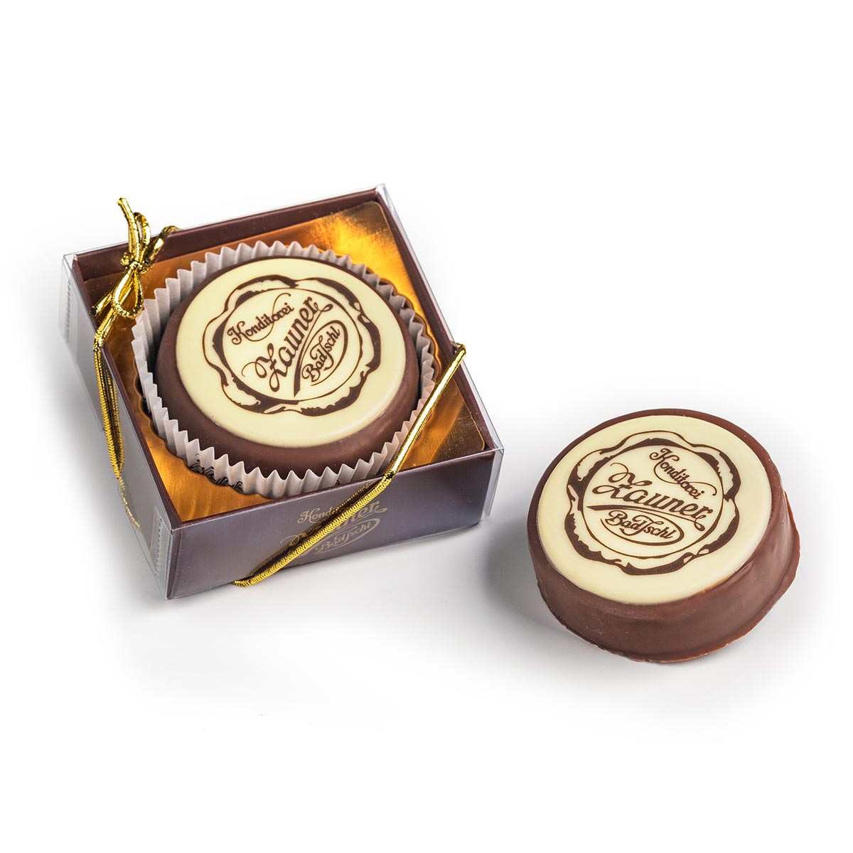 Harmonische Nougat-Grillagemasse mit Oblaten, Haselnüssen und Schokolade.